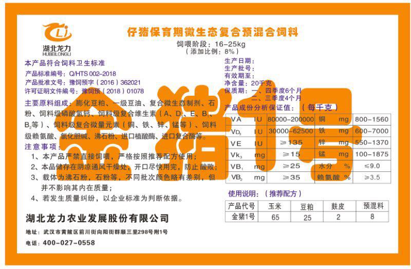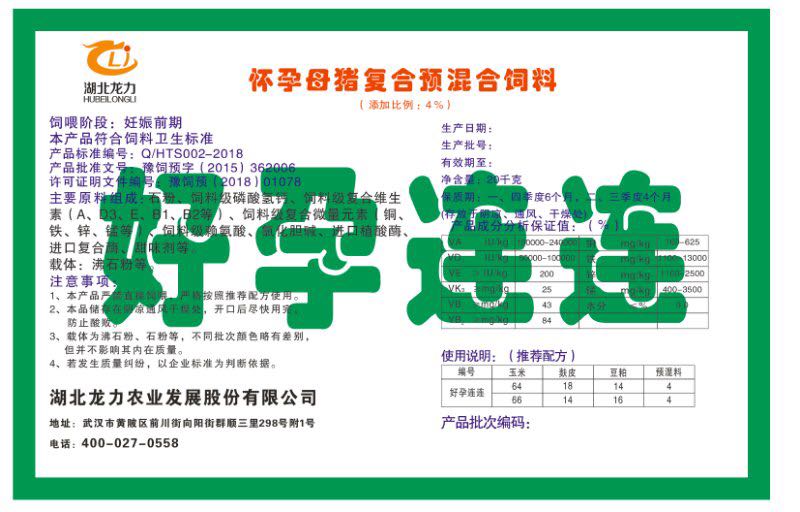 湖北龍力農業(yè)發(fā)展股份有限公司坐落于武漢市黃陂區前川街向陽街群順三里298號附1號。公司成立于2014年6月,公司自成立以來把“創(chuàng)全球最大養(yǎng)豬綜合服務”為企業(yè)愿景。致力于打造教保料品牌”作為公司發(fā)展的明確目標。公司一直致力于豬營養(yǎng)的研究和開發(fā),積極與國內外高校和科研機構合作,推廣養(yǎng)豬技術、動物營養(yǎng)新概念,向世界農牧企業(yè)學習與合作。公司采用國內先進的生產工藝,選擇高精度電子配料秤,高均勻度、無殘留混合機等先進設備....